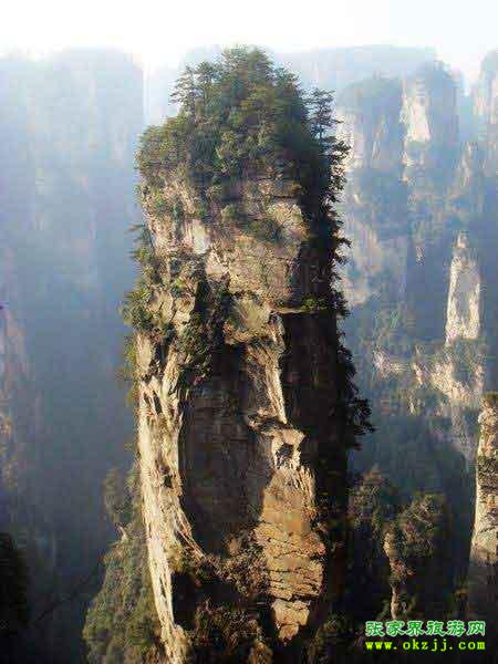 “南天一柱”為張家界“三千奇峰”中的一座,位于世界自然遺產(chǎn) 武陵源風景名勝區(qū)袁家界景區(qū)南端,海拔高度1074米,垂直高度約150米,頂部植被郁郁蔥蔥,峰體造型奇特,垂直節(jié)理切割明顯,仿若刀劈斧削般巍巍屹立于張家界,有頂天立地之勢,故又名乾坤柱。