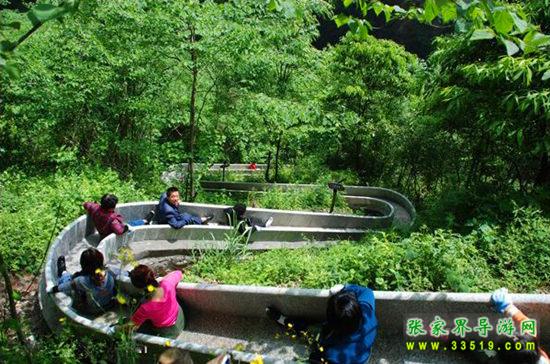 該滑道由清一色的花崗石板拼砌而成,再作精工打磨和拋光工藝處理,內(nèi)槽深45厘米,寬50厘米,滑行用時三至五分鐘,比平常步行跋涉游覽節(jié)約20分鐘,是張家界大峽谷風景區(qū)建成的游客參與性設施,也是緩解游客游覽體力透支的人性化服務設施之一。它將成為海內(nèi)外游客前來張家界大峽谷觀光游覽時節(jié)省時間和體力的最佳選擇。